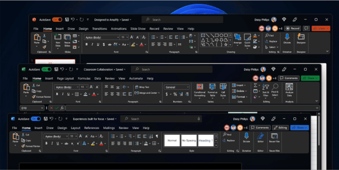 Microsoft 365 has a fresh look. It's modern and new, designed to help you focus on your best work. MS has applied Fluent Design principles to deliver an intuitive, coherent, and familiar experiences across all your Microsoft 365 apps in Windows.